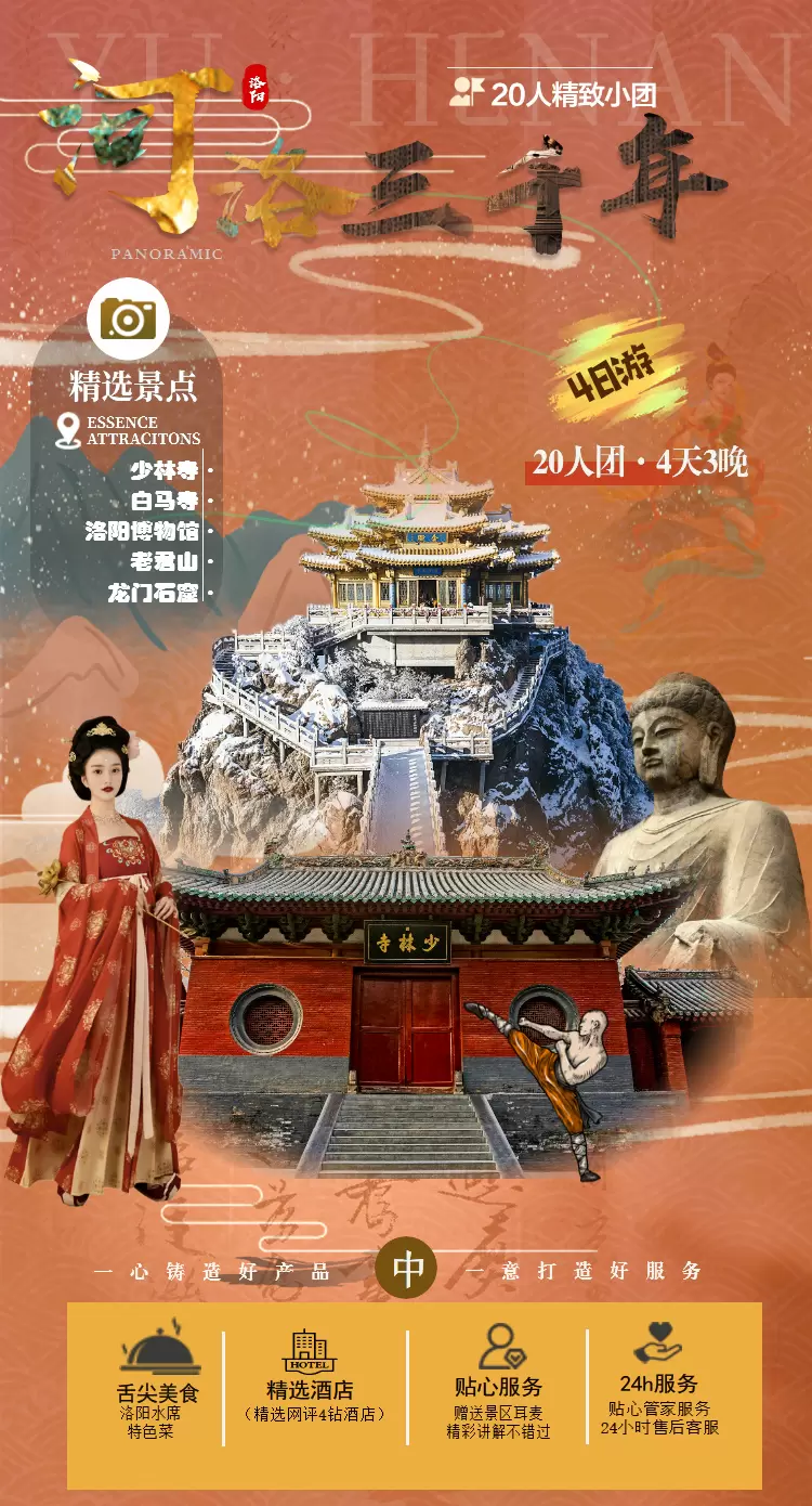洛阳老君山景区+龙门石窟+洛阳博物馆+白马寺+少林寺四日游