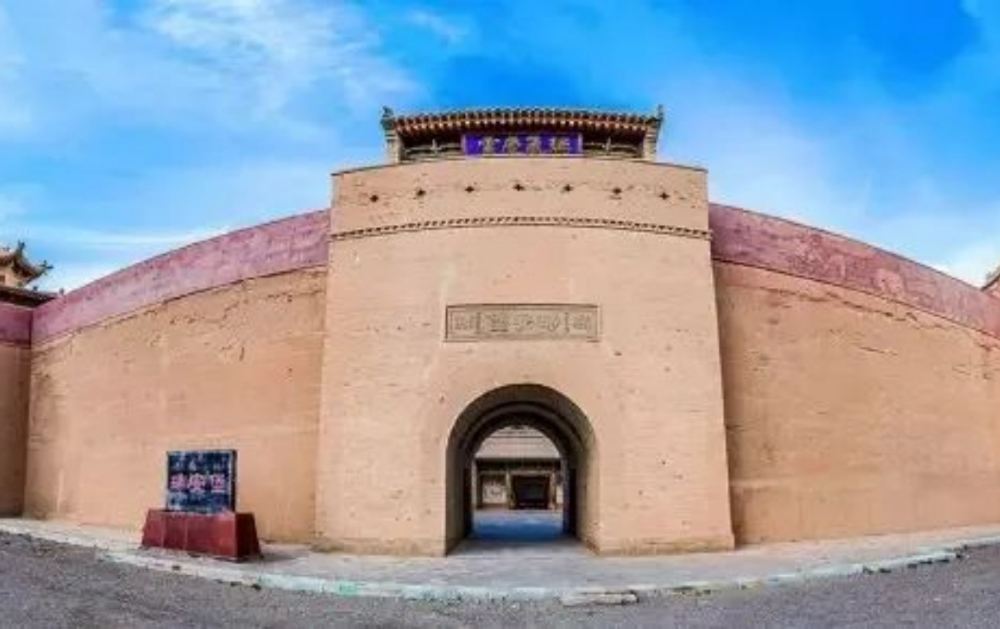 ▲ 瑞安堡 :位于民勤县三雷乡三陶村,堡主王庆云,字瑞庭,建堡时为民勤县保安团长,取其名中的“瑞”与他春风得意的官职中的“安”为堡名,既有吉祥安康之意,也隐含着炫耀之情。平面呈长方形,南北长100米,东西宽56米,南面开门。砖包墙,高12米,基宽6米,上有女墙,高2米。门楼单檐歇山顶,面阔二间6米,进深一间3米,高5.8米。堡内有房屋140余间,沿中轴线对称分布,三进四合院式,为集防卫、民宅、园林艺术为一体的典型的北方地主庄院。