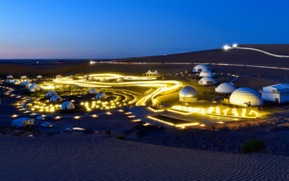 ▲ 浩瀚沙海、星光璀璨,这里有通透的大气、静谧的夜空,有一切满足您惬意休闲的服务设施,来到民勤的腾格里沙漠,来到摘星小镇,开启一段童话般美妙的奇缘。