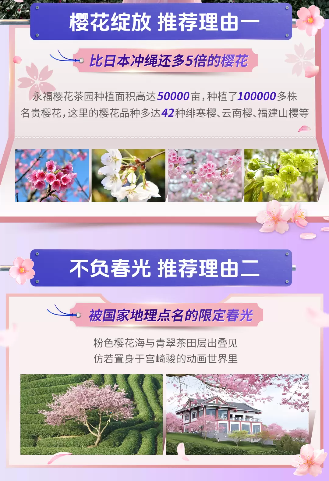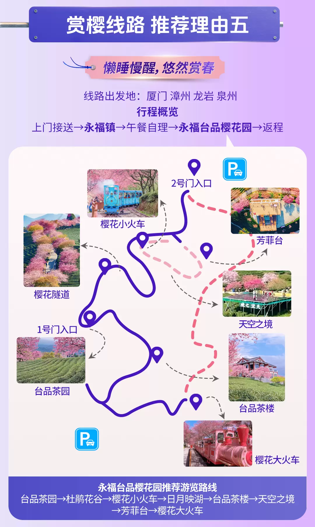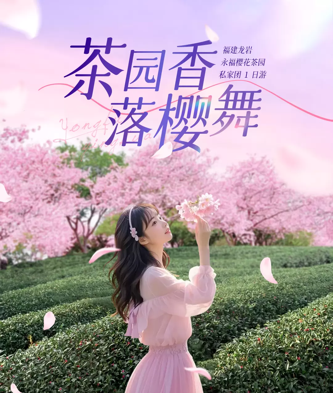 龙岩永福台品樱花茶园一日游【春日茶园赏花+独立成团+上门接送+门票|可选出发地】