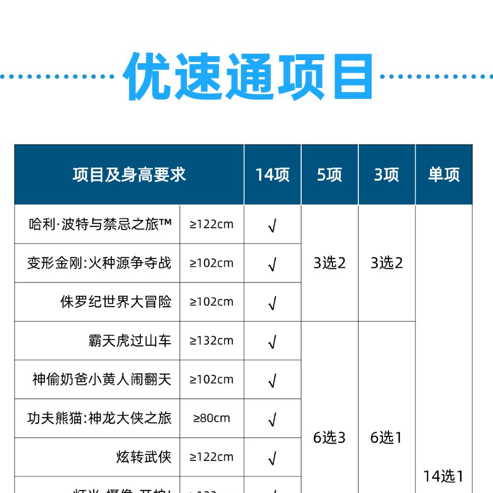 - 优速通使用方法:到对应项目,走优速通专属通道,刷脸入场或出示购票证件核验入场。
