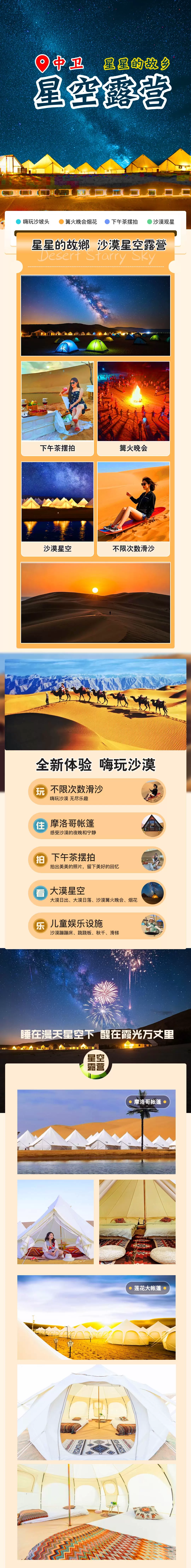 腾格里沙漠星空露营1晚·多房型选择★篝火晚会烟花+不限次数滑沙项目+下午茶摆拍+双人早餐