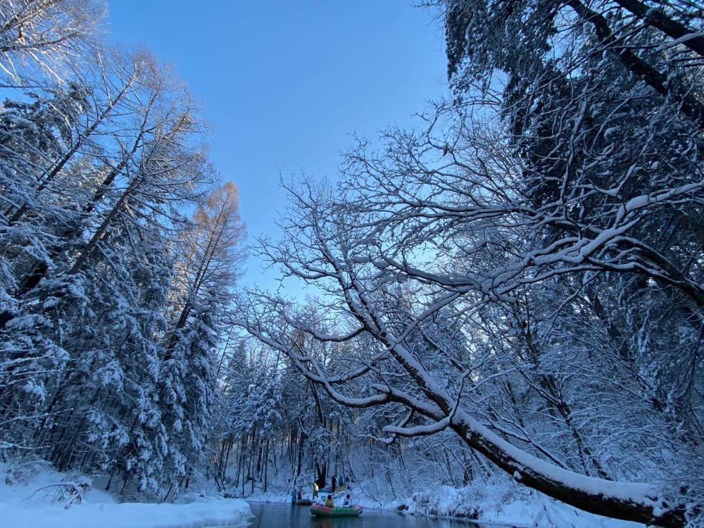 "吉林省抚松县松江河有一个美丽而神奇的地方,可以看雾凇的"天池水漂流"它从长白山珊珊而来,顺松花江源头奔腾而下,"松花江"这个久远的名字,无论它传到遥远的天际,都是从这里开始,"松花江水"无论流向何处都是从这里流出。十八道湾湾水流曲折珠花飞溅,林茂草密林蛙声声让人们神往自然,仿佛天上人间。饱览一隅神仙池,三千石阶度下来,鬼使神差漂一漂。可谓:白山归来必一漂,悠悠仙境画中游。冬季的长白山雾凇映雪,银装素裹,玉洁冰清,在这样的独特的环境中,游客穿上防寒服乘坐橡皮艇轻舟畅游,就是一个“爽”。伴着洋洋洒洒的雪花儿,两岸是一派冰天雪地景象,游客在橡皮艇上顺流而下,此情此景让人忘却了寒冷,别有一番惬意。