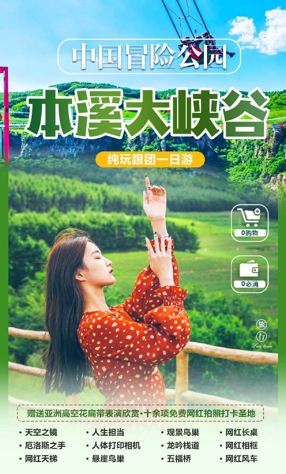 本溪大峡谷一日游【+含往返车费+门票+导游服务+保险】【【品质保证】旅行社承诺不进任何暗店,真正团型。】