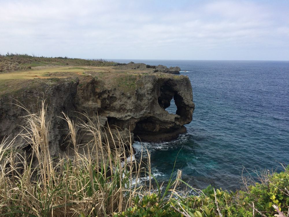 【万座毛】(停留时间约30分钟)是位于冲绳本岛西海岸恩纳村的国家自然公园。万座毛是冲绳县内数一数二的景观,位于海边的一座断崖之上,崖上是一片辽阔青草地,在崖上眺望,景色壮丽无比。"万座"的意思就是"万人坐下","毛"是冲绳的方言,指杂草丛生的空地,所以"万座毛"指的就是可以容纳万人坐下的大草坪。