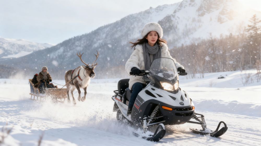 ▲ 把冬天的沉闷甩在身后,雪地摩托的轰鸣才是长白山野的心跳