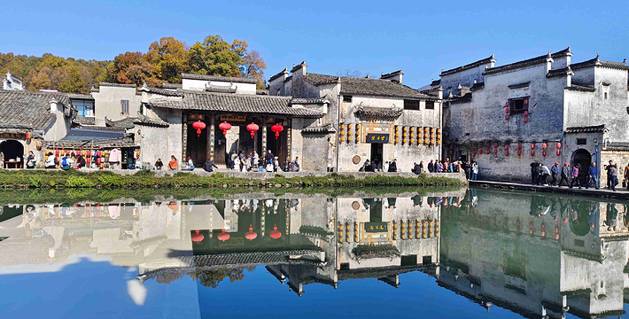 南湖位于宏村南首,湖面倒影浮光,水天一色,远峰近宅,跌落湖中,动静相宜,更显明丽。