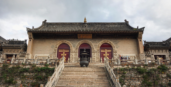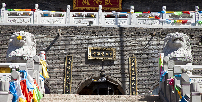 五台山位于山西省东北部,忻州市五台县和繁峙县之间,西南距省会太原市230公里。与浙江普陀山、安徽九华山、四川峨眉山、共称“中国佛教四大名山”。列中国十大避暑名山之首。与尼泊尔蓝毗尼花园、印度鹿野苑、菩提伽耶、拘尸那迦并称为世界五大佛教圣地,或者世界五大佛教名山。2009年被联合国教科文组织以文化景观列入世界遗产名录。因五峰如五根擎天巨柱拔地而起、巍然矗立、峰顶平坦如台,故名五台。又因山上气候多寒,盛夏仍不见炎暑,故又别称清凉山。五台山属太行山系的北端,跨忻州市繁峙县、代县、原平市、定襄县、五台县,周五百余里。中心地区台怀镇,距五台县城78公里、繁峙县砂河镇48公里、忻州市150公里、山西省会太原市240公里。在北纬38°50'—39°05'、东经113°29'—113°44'之间,由一系列大山和群峰组成。其中五座高峰,山势雄伟,连绵环抱,方圆达250公里,总面积592.88平方公里。由古老结晶岩构成,北部切割深峻,五峰耸立,峰顶平坦如台,故称五台︰东台望海峰、西台挂月峰、南台锦绣峰、北台叶斗峰、中台翠岩峰。五峰之外称台外,五峰之内称台内,台内以台怀镇为中心,北台顶海拔3061.1米,有“华北屋脊”之称。五台山自然植被以草地为主,由草甸、草原、灌丛构成,是优良的夏季牧场。五台山是文殊菩萨的道场,与浙江普陀山、安徽九华山和四川峨眉山并称为四大佛教名山,并以其悠久的历史文化和规模宏大的寺庙建筑群位居四大佛教名山之首。自东汉永平(58年~75年)年间起,历代修造的寺庙鳞次栉比,佛塔摩天,殿宇巍峨,金碧辉煌,是中国历代建筑荟萃之地。雕塑、石刻、壁画、书法遍及各寺,均具有很高的艺术价值。唐代全盛时期,五台山共有寺庙300馀座,经历几次变迁,寺庙建筑遭到破坏。目前台内外尚有寺庙47座。历史上,印度、尼泊尔、朝鲜、日本、蒙古、斯里兰卡等国的佛教信徒,来此朝圣求法的甚多。