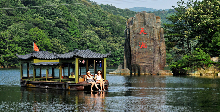 木兰天池风景区位于黄陂区北部的石门山,距武汉市中心仅55公里,距天河机场仅45公里。整个景区占地面积4800亩,分为风景游览区和休闲度假区。其主峰海拔520.6公尺,属大别山南麓一脉,这里沟壑纵横,林木茂盛,一年四季流水不断,呈现的是一种山水交融的湿地生态。木兰天池风景区内以观赏飞瀑、溪潭、怪石等景观为主,可谓十步一景、百步一绝,特别是高山环抱的天池水如明镜,清澈见底。游船踏浪,驶过青山白云倒映的池水,仿佛来到人间仙境。
