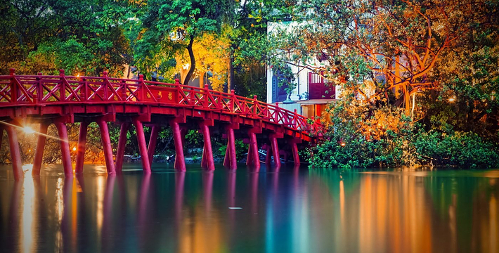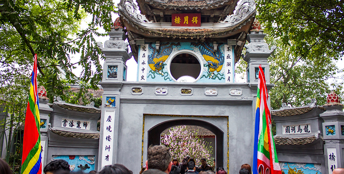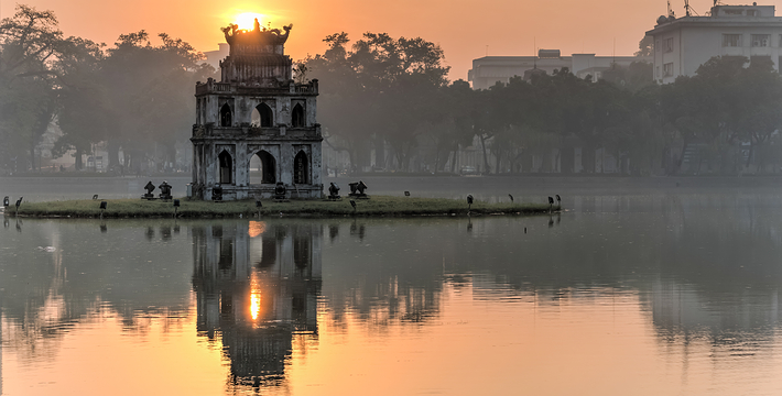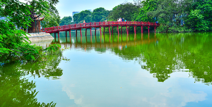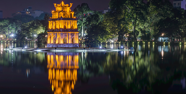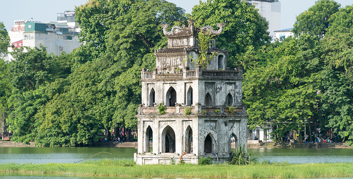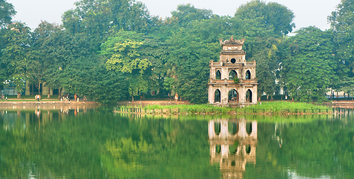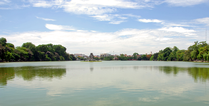 内岛建有龟塔(Thap Rua),塔身小巧玲珑,顶端有一颗星。湖中心还是独柱寺和玉山寺。玉山寺内供奉着关帝、兴道王和文昌帝君三圣。玉山寺门外建有一座5层石塔,塔顶状似毛笔,大门由4根笔状石柱构成,寓意“金榜题名”,有汉字对联“临水登山一路渐入佳境,寻源访古此中无限风光”。