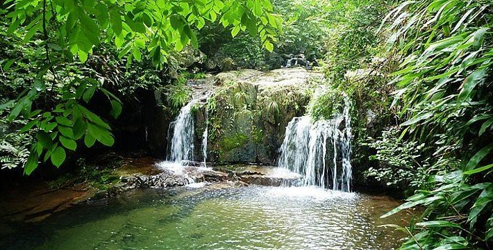有三折重叠,落差为60多米的“长龙飞瀑”,有彩虹横卧的“虹贯龙门”(人称小黄果树),更有神形皆备的“神龟听瀑”——真可谓瀑瀑相连,一步一景。藏龙百瀑不仅以瀑布众多而闻名,同时还有一块万吨巨石在七千万年前就悬挂在两座悬崖之间,人称“仙人桥”,有千钧一发之险,望仙石、老鹰石、天生悬石,石石相望,形象逼真。俗话说深山藏宝,景区内有多种野生动物和近百种国家保护树种。夏天天气凉爽,宁静幽雅,有十里不打伞之奇,峡谷无蚊之妙;冬天百瀑冰凌,天造奇观,雪景迷人,堪称“江南哈尔滨”。这里还有“太平天国——小梁山”的历史故事,那层层梯田,是太平军留下的历史陈迹,在游览景区的同时,缅怀古人,会给你增添一份豪情。景区集“奇、特、险、幽、秀”于一体,展示在世人面前。让游客“沾一点祥瑞紫气,得一生平安洪福”。
