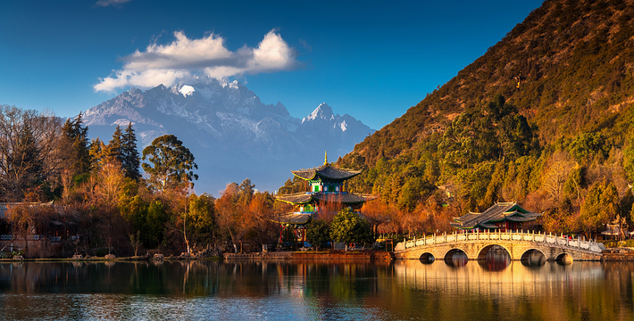 到了丽江古城后,可乘的士前往,建议游客从大研四方街步行前往景区,15分钟即可到达。