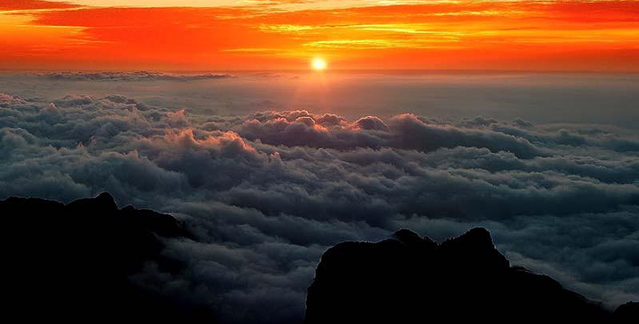 这里的日出壮观美丽,可与泰山、海边相媲美,令人赞叹。