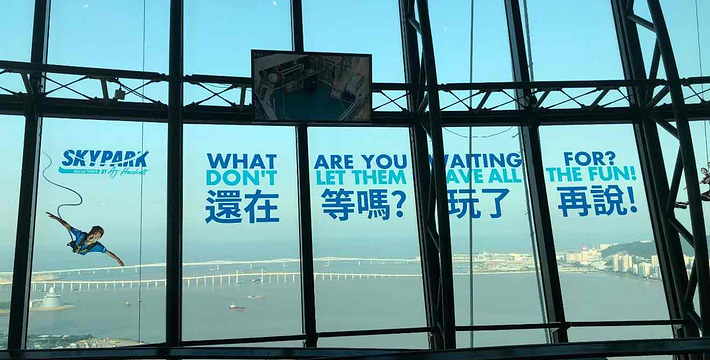 推荐理由:1.全球十大高塔之一。2””两项吉尼斯世界纪录。3.可俯瞰全澳景色,澳门、珠海尽收眼底。观光廊:在223米高处望出去,360°!观光廊内有宽敞空间让您自在漫步。其直通三层楼的外墙由强化玻璃组成,令室内保持光线足充。放眼窗外,整个将澳门半岛、凼仔、路环尽收眼底,更可以远眺中国内地,见证每天都在变化的珠三角,尤其是横琴和珠海。随着夜幕降临,澳门的赌场与酒店亮起千变万化的灯饰,闪烁璀璨,充满动感和活力。高飞跳:令人叹为观止的高飞跳, 在半空感受无穷乐趣!虽然听起来难以置信,但你确可以在空中飞翔– 17秒!从233米的高塔上起飞,在澳门上空写意遨翔,这感觉无与伦比!与自由下坠式的笨猪跳不同,高飞跳利用”Fan Descenders”风机下降技术,让体验者可以时速75公里的速度降下,身体在无反弹动作或倒转的情况下稳定着陆。试想像在天空中飞翔17秒,整个澳门都在你的脚下!蹦极跳:你将从233米高的特制高空平台跃下,感受4至5秒自由下坠的快感。以每小时200公里的极速直冲地面,疾风就在你的耳边咆哮。50米的蹦极跳橡皮缆可以拉长至4倍的长度;完全伸延后再把你反弹到30米的高空!特制的穏定钢缆设备,能让你经过数次反弹后慢慢着陆于特设的安全气垫上。 百步登天:世界上没有其他高塔可以让遊客踏足其顶峰;你需要强大的体能与胆量来挑战百步登天,但挑战成*的话,你将会得到绝大的成就感!澳门旅遊塔的其他冒险活动以下坠力挑战你的胆量,而百步登天则以高度带给你惊喜。上塔下塔来回需时合共约两小时。空中漫步:你可以在距离地面233米高的高空户外绕塔踱步。不过记住两点:步道只有1.8米阔,第二,没有扶手设备!欢迎来到惊险刺激的空中漫步。由AJ Hackett专业团队设计的世界上个架空安全系统能100%保证你的安全(即使没有扶手),让你安心体验各种惊险和刺激。