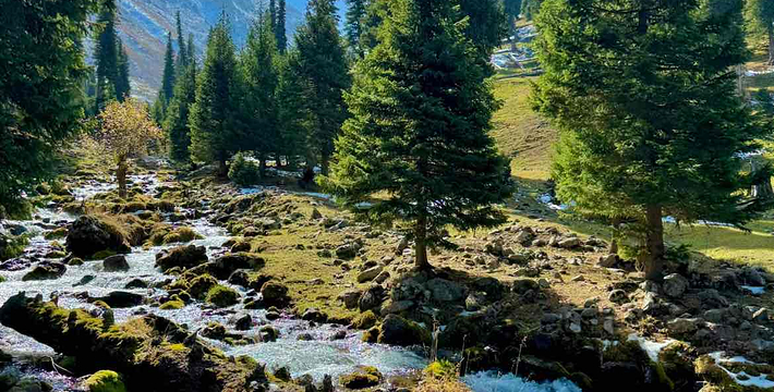 河谷阶地发育明显,山势和缓,坡度约11-12度,生长着茂盛的细茎鸢尾群系山地草甸。其它伴生种类主要有糙苏、假龙胆、苔草、冰草、羊茅、草莓和百里香等。