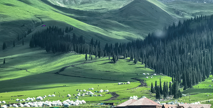 那拉提旅游风景区,地处天山腹地,在被誉为“塞外江南”的伊犁河谷东端,有“人间天堂”之美称。