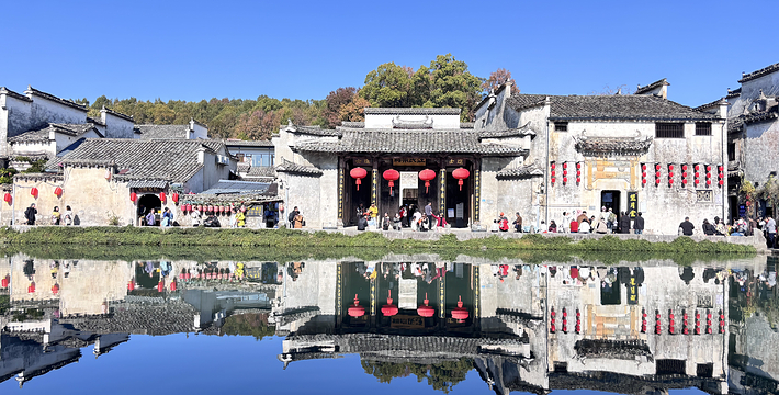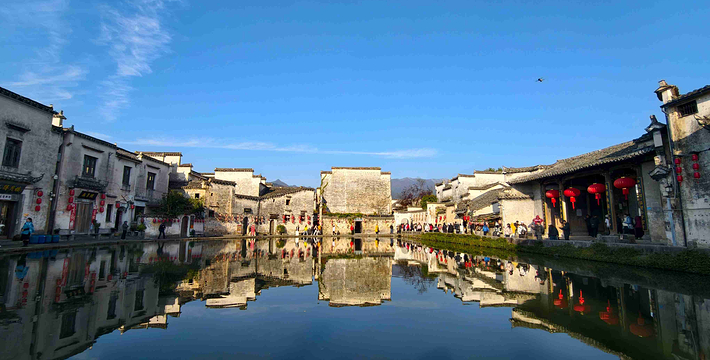 南湖位于宏村南首,湖面倒影浮光,水天一色,远峰近宅,跌落湖中,动静相宜,更显明丽。