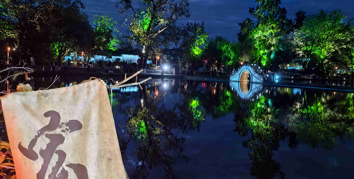 垂柳依依的南湖边,李慕白牵马从石拱桥上缓缓走过;玉娇龙持剑飞身掠去,在宛如镜面的月沼上划出一道波痕。