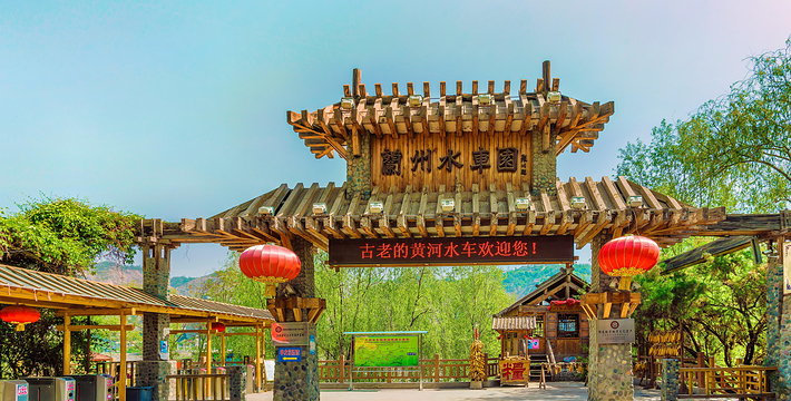 水车园位于市滨河路西段,东邻中山桥,西邻“黄河母亲”雕塑,北望白塔山公园,南近白云观,是滨河路旅游线上的重要一景。水车历史悠久,外形奇特,起源于明朝。兰州水车,又叫“天车”、“翻车”、“灌车”、“老虎车”,水车园是兰州市旅游局为再现这一古老的灌溉工具,专门设计仿建的游览参观公园。水车轮幅直径达16.5米,幅条尽头装有刮板,刮板间安装有等距斜挂的长方形水斗。水车立于黄河南岸,旺水季利用自然水流助推转动;枯水季则以围堰分流聚水,通过堰间小渠,河水自流助推。当水流自然冲动车轮叶板时,推动水车转动,水斗便舀满河水,等转至顶空后再倾入木槽,源源不断,流入园地,以利灌溉。水车园再现了水车这种古老的水利机械,可以使中外游人一睹为快。水车园建成于1994年,占地14500平方米,由靖远县特级木工高启荣建造。公园由双轮水车、围堰、水磨坊服务室和游乐区组成。