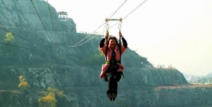 “天坑飞索”西起尖山,东至狮子山,斜跨长度446米,落差48米。该索道与天坑美景结合起来,共同构成了一幅优美而壮观的画卷。