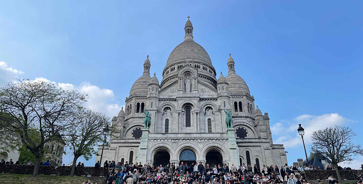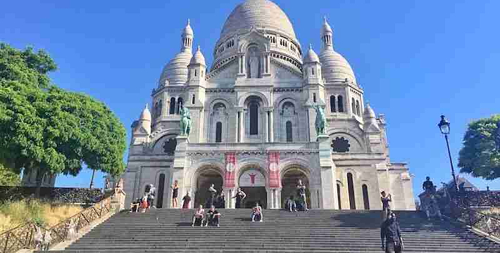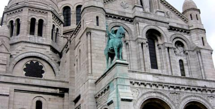 圣心教堂(Sacre Coeru),是巴黎的象征,从这里可以俯瞰蓬皮杜艺术中心、巴黎圣母院和荣军院等。圣心教堂 Sacre Coeru始建于1876年,1919年落成,由全法国捐款兴建。教堂内有许多浮雕、壁画和镶嵌画。圣坛上方是巨副天顶壁画,耶稣与天父相对而立,圣母等随侍两侧。圣心教堂 Sacre Coeru洁白的大圆顶具有罗马式与拜占庭式相结合的别致风格,四周为四座小圆顶,中间为一座大圆顶,颇具东方情调。教堂后部有一座高84米的方型钟,重19吨。沿着庄严的石阶向上,直抵教堂正外立面和带三个拱门的门廊,门廊的上方是圣路易国王与圣女贞德骑马塑像。圣心院又有巴黎“小白宫”之称、这当然是指外形而言。