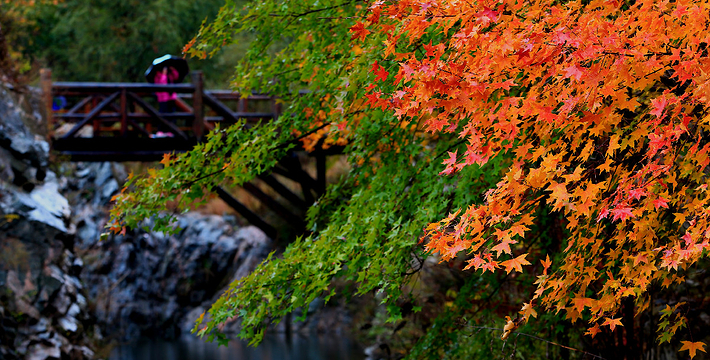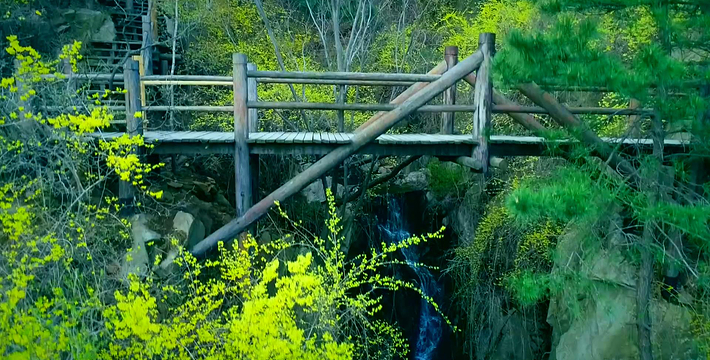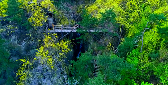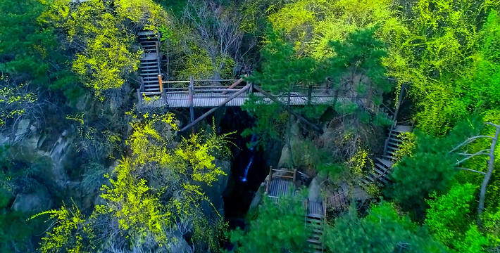 九如山以自然山水而闻名,山依水势,水夺天工,托起一片世外奥区。远远望去,可见泉涌成溪,溪流成瀑,瀑落成潭,潭潭相通,汇集成八潭明镜。