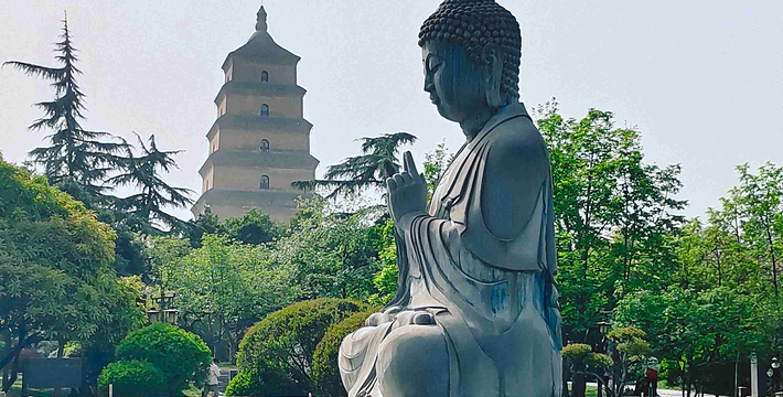 大雁塔二层的塔室内,供奉着一尊铜质鎏金的佛祖释迦牟尼佛像,系明初宝贵文物,被视为“定塔之宝”,到此游览的游客争先礼拜瞻仰。