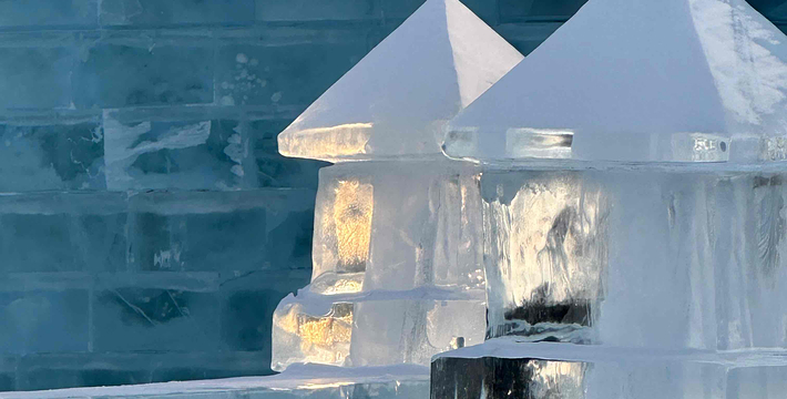 亮灯后晶莹的冰雕更加梦幻