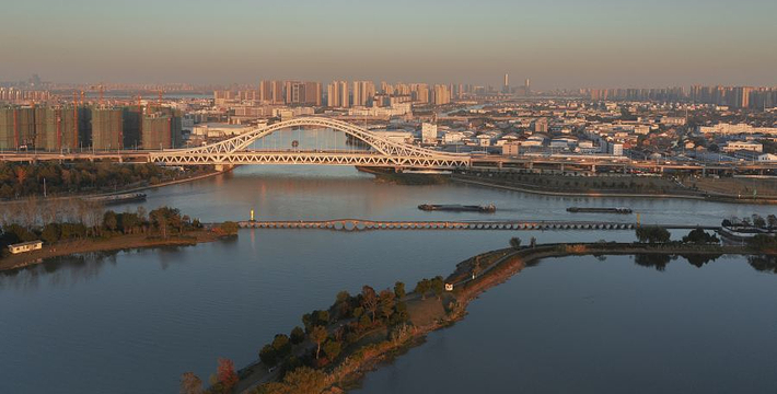 又称长桥。在吴县市长桥乡运河边。始建于唐元和十一年至十四年(816―819),相传为刺史王仲舒捐宝带助资建桥,又因桥形长若玉带,故名。南宋绍定五年(1232年)和明正统十一年(1446年)重建,现存建筑大部分是清同治十一年(1872年)重建的遗物。桥跨滟台湖口玳玳河上,全部石建,桥下由53个桥孔联缀而成,都是半圆形的券式拱。桥孔跨径一般都在3.9米左右,唯中部有3孔跨径大至6.95米和6米,桥两端拱脚之间相距约249.8米,总长316.8米。桥宽4.1米,桥墩呈喇叭形,桥端宽6米。桥换两端原各有石狮一对,现北端仅存一只。北端有石塔和碑亭各一座,塔高约4.5米,在27孔与28孔间的桥墩上亦有一座相同的石塔。桥下为木桩,桩顶置基础石,上安放墩身,拱圈的下端嵌在墩上预留的沟槽里。这种桥墩属于柔性墩,一孔受力波及全桥,故有连拱桥之称。工匠为防止一孔坍毁影响整个桥孔安全,采用“单向推力墩”,将桥北端起的第27号桥墩,改成由两个并立的桥墩,叫刚性墩。据传英军戈登与太平军作战时,使北部26孔全部坍倒,但刚性墩以南的26孔未遭破坏。亦是国内为中国十大名桥之一。每年的中秋,可观“五十三孔照影来”的“串月”奇景。