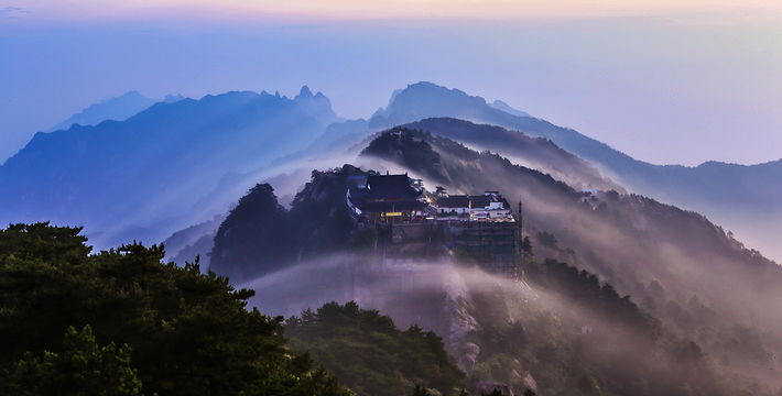 莲花峰位于九华山北部,海拔937米。主峰兀立,峰顶削尖,万瓣叠嵌,气势峭拔。远眺石骨花胎,如含苞待放的莲花。