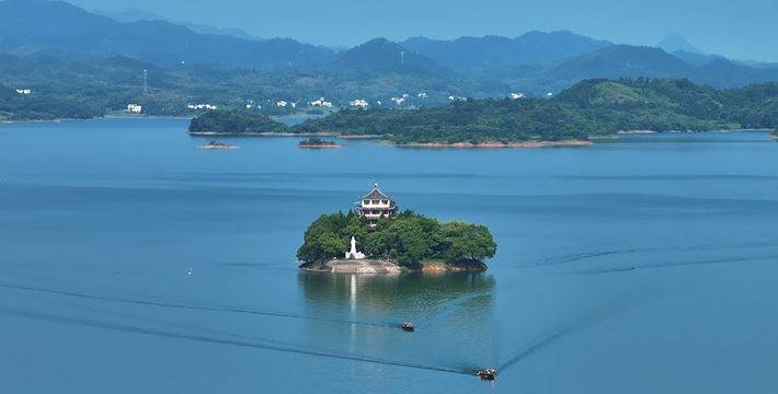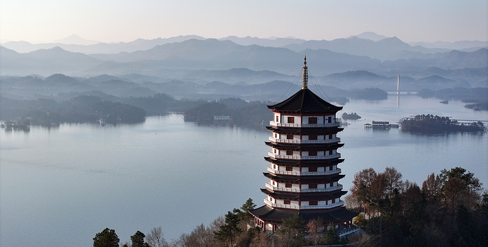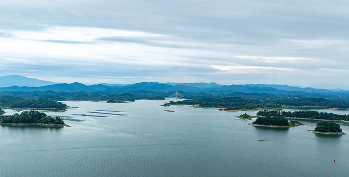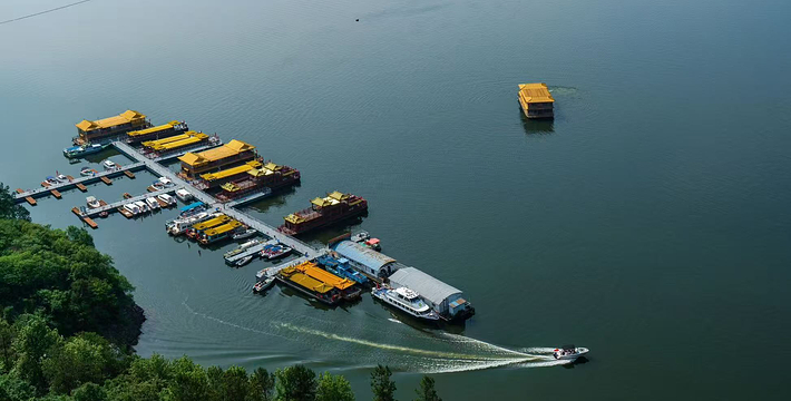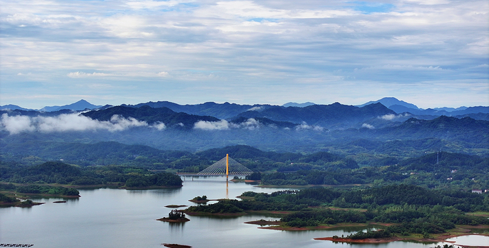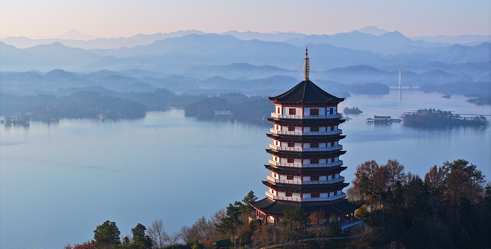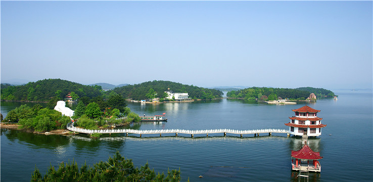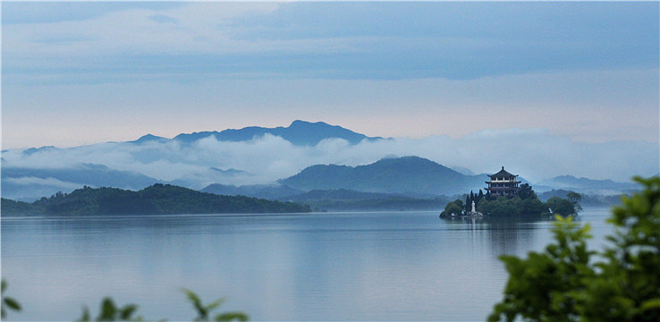 万佛湖梅山三面环水,雨过天晴时,湖上笼罩着一片轻纱似的晨雾,梅山顶上也是烟云缭绕,呈现在眼前的是一幅写意的山水画,梅山晓烟为“龙舒八景”之一。
