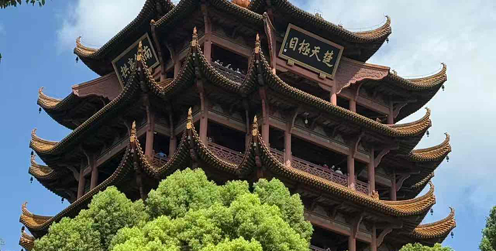 巍峨耸立于武昌蛇山的黄鹤楼,享有“天下绝景”的盛誉,与湖南岳阳楼,江西滕王阁并称为“江南三大名楼”。黄鹤楼始建于三国时期吴黄武二年(公元223年),传说是为了军事目的而建,孙权为实现“以武治国而昌”(“武昌”的名称由来于此),筑城为守,建楼以嘹望。至唐朝,其军事性质逐渐演变为著名的名胜景点,历代文人墨客到此游览,留下不少脍炙人口的诗篇。唐代诗人崔颢一首“昔人已乘黄鹤去,此地空余黄鹤楼。黄鹤一去不复返,白云千载空悠悠。晴川历历汉阳树,芳草萋萋鹦鹉洲。日暮乡关何处是,烟波江上使人愁。”已成为千古绝唱,更使黄鹤楼名声大噪。