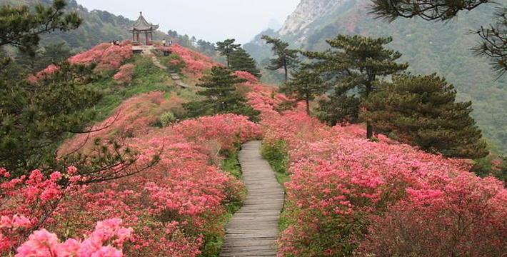 龟峰山位于麻城县东30公里处,主峰系马桩,海拔1224米。龟峰山由九座山峰组成,形如昂首翘尾的巨龟。山上处处是盘松虬柏、怪石险径,既绮丽又雄伟,颇有奇趣,为鄂东著名风景区。山地险要,自古即为军事要地。相传春秋末年吴楚曾在此交过战,东汉末曹操曾在此练过兵,并为山顶“能仁寺”题联;南宋初年牛振曾在此安过营,此人之墓在山麓附近。1962年董必武到此游览时,曾誉为“第二庐山”,并亲笔题诗:“昔日游击地,今为产茶区。龟峰名久著,牯岭德不孤。烂漫红花剩,蒙茸绿草铺。此山潜宝物,前进莫踌躇。”此山的主要古建筑有化主庙、无梁殿和亭台等,主要名胜有人迹石、棋盘石和升了井、观音崖、合掌石、喷雪崖和葱担石等。其中,以人迹石。人迹石传为唐高僧真应禅师“立化”的遗址,棋盘石传为南极老人和北极老人弈棋的遗址。龟峰山山腰悬壁下的升子井,奥妙难解,堪称一奇。它虽深不及尺,但晴旱则水不干涸,雨涝则水不满溢,而且逢夏则水凉,遇冬则水温,可谓变化尽随人意,故又称如意泉。龟峰山物产丰富,盛产板栗、鲜柿和青茶。青茶又称云雾茶,早已蜚声国内外。