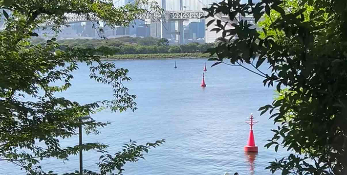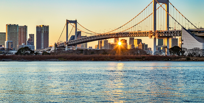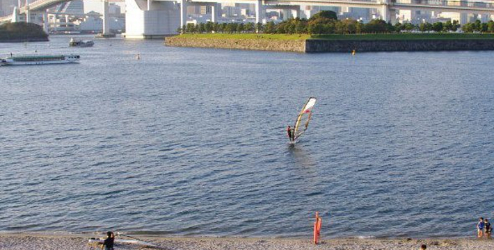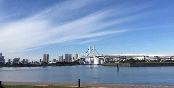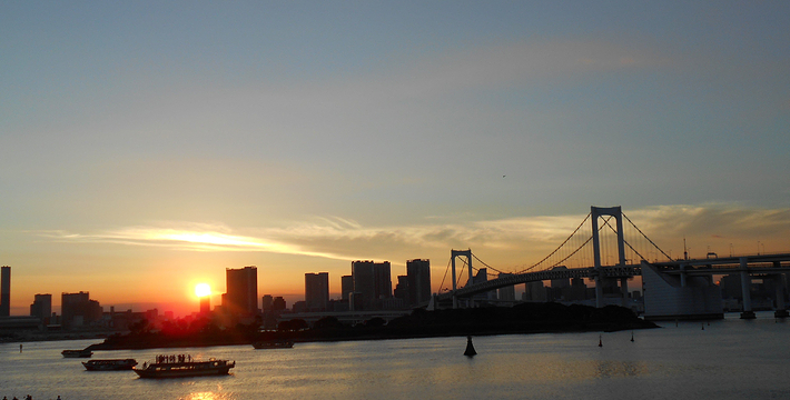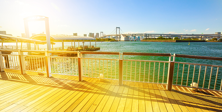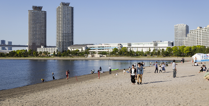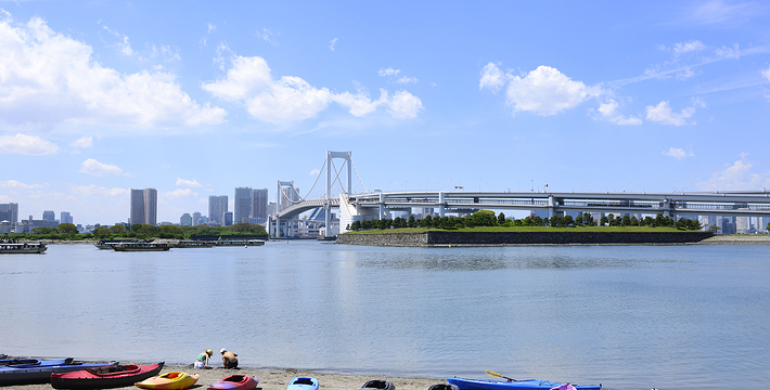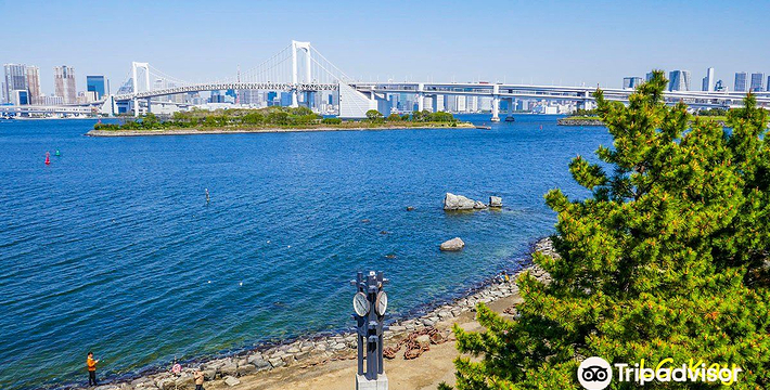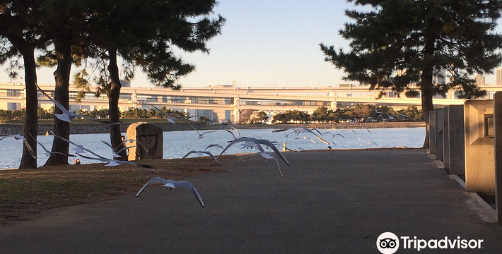 位于东京临海副都心地区的台场海滨公园。台场海滨公园有一条滨海散步布道,是从DECK购物中心前一路蜿蜒至美丽的日航饭店,来此可尽情放松,吹吹海风,喂食海鸥,赏赏海景。也可以搭乘水上巴士,从水路观赏更为浪漫。