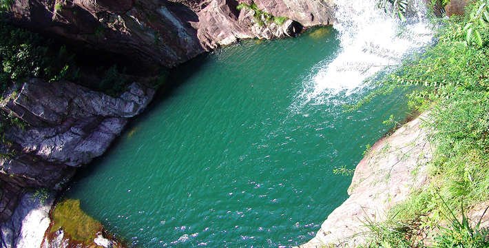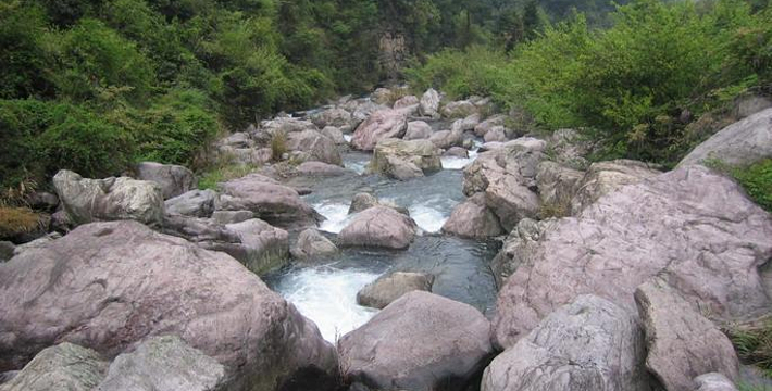 ”、AAAA级景区,位于磐安县南端龙溪上游,距磐安县城30公里,距诸永高速双峰互通口10分钟车程。景区以山险、石奇、水清、洞幽、溪曲而闻名,“秀瀑孕深潭,绝峰育奇石,龙溪十八渡,石上四重天”是其景观的真实写照。主要景点有百杖三叠瀑、龙皇庙、仙翁送宝、十八渡、百步峻、仙风洞、大炮石、滴水岩等,其中百杖三叠瀑为国内罕见的冰臼瀑布,堪称江南一绝,其所在地势险要,上下三瀑相连,峡谷中水声轰鸣、水雾弥漫,背日而站,但见彩虹横空,似入人间仙境。