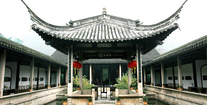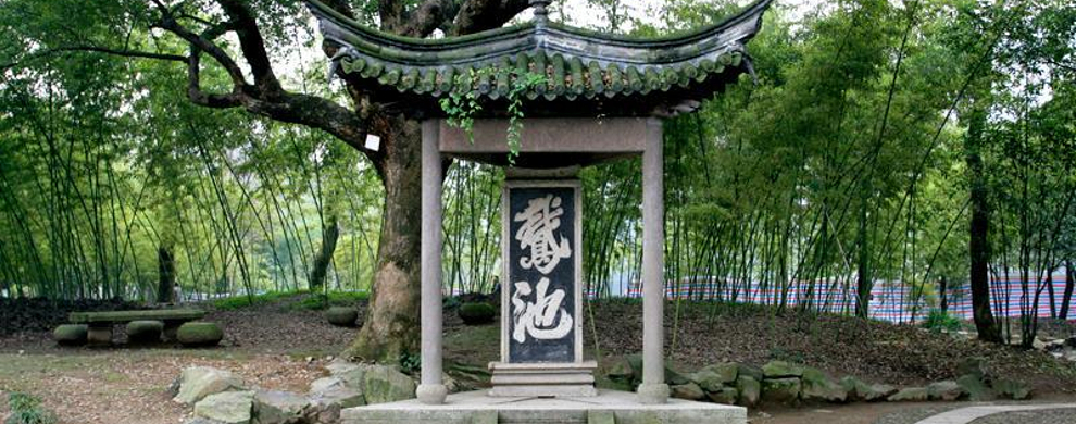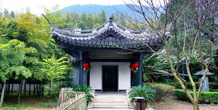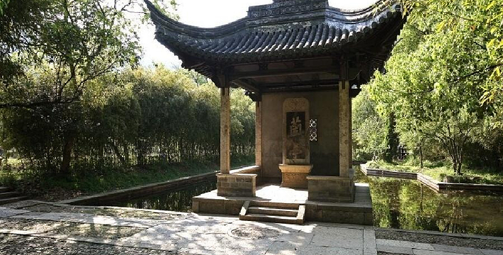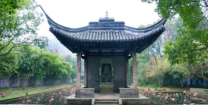 兰亭位于绍兴市西南十四公里处的兰渚山下,是东晋著名书法家王羲之的寄居处,这一带有“崇山峻岭,茂林修竹,又有清流激湍,映带左右”,是山阴路上的风景佳丽之处。相传春秋时越王勾践曾在此植兰,汉时设驿亭,故名兰亭。现址为明嘉靖二十七年(公元1548年)郡守沈启重建,几经反复,于1980年全面修复如初。兰亭布局以曲水流觞为中心,四周环绕着鹅池、鹅池亭、流觞亭、小兰亭、玉碑亭、墨华亭、右军祠等。鹅池用地规划优美而富变化,四周绿意盎然,池内常见鹅只成群,悠游自在。鹅池亭为一三角亭,内有一石碑,上刻“鹅池”二字,“鹅”字铁划银钩,传为王羲之亲书;“池”字则是其子王献之补写。一碑二字,父子合璧,乡人传为美谈。流觞亭就是王羲之与友人吟咏作诗,完成《兰亭集序》的地方。东晋穆帝永和九年三月三日,王羲之和当时名士孙统、孙绰、谢安、支遁等41人,为过“修禊日”宴集于此,列坐于曲水两侧,将酒觞置于清流之上,飘流至谁的前面,谁就即兴赋诗,否则罚酒三觞。这次聚会有26人作诗37首。王羲之为之作了一篇324字的序文”之称的王羲之书法代表作《兰亭集序》。兰亭也因此成为历代书法家的朝圣之地和江南著名园林。