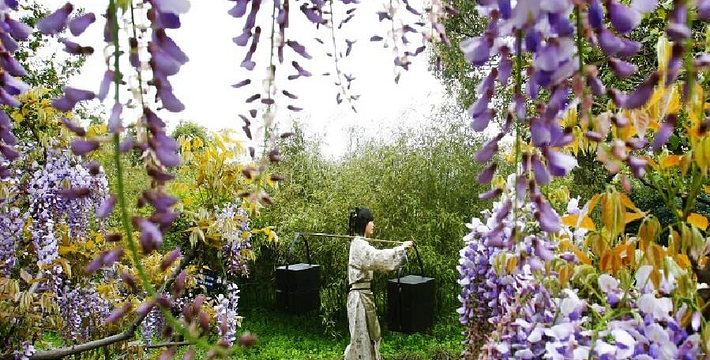 当年,王羲之等在举行修禊祭祀仪式后,就在这里,用这种游戏即兴赋诗并饮酒,王羲之将大家的诗集起来,用蚕茧纸,鼠须笔挥毫作序,乘兴而书,写下了举世闻名的《兰亭序》。