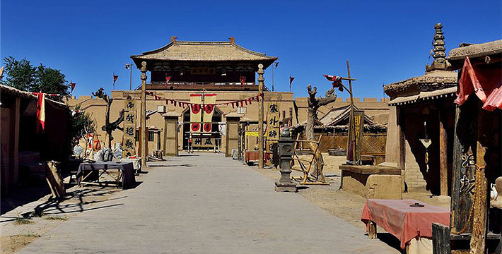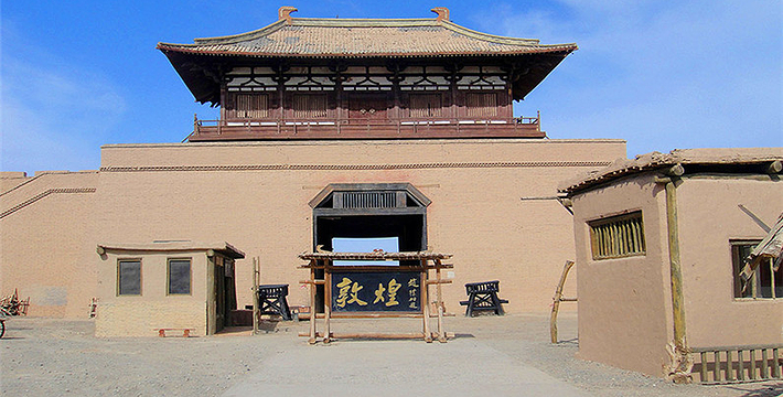 “敦,大也;煌,盛也。”古人以盛大辉煌来形容古代敦煌的繁荣昌盛,而今坐落在距敦煌市区西16公里的敦煌古城为我们再现了敦煌昔日的辉煌和神奇的传说。敦煌古城以宋代《清明上河图》为蓝本,被称为“中国西北古代建筑艺术的博物馆”,参考中国古代建筑风格精心设计、建造而成。建筑面积1.5万平方米,融千年西域民俗于一体,城开东、西、南三门,城楼高耸;城内由北宋时期的高昌、敦煌、甘州、兴庆和汴梁五条主要街道组成,点缀以不同地域的过街楼、佛庙、当铺、货栈、丝绸店、酒肆、饭馆、住宅等,作为拍摄用道具,互为背景,相辅相成。敦煌古城已为《敦煌》、《大敦煌》、《神探狄仁杰》、《成吉思汗》、《怒剑啸狂沙》、《封神榜》、《情剑山河》、《鸿门宴》等一百多部中外影视片拍摄提供了场景。