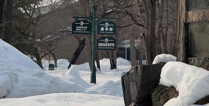 北大校园内著名的景观就是白杨林大道,位于理学部与工学部之间靠近农场附近,长约300米。2004年9月的台风袭击中,具有上百年树龄的白杨树遭到了很大的破坏。1999年起,校园中部的旧理学馆大楼改建为北海道大学综合博物馆。位于校园北区的重要文化遗产札幌农学校第二农场,是根据克拉克博士的构想而建立的模范家畜,中央草坪附近立有克拉克博士的胸像,是来北大参观的游客经常留影的地方。主校园的南面由北海道大学植物园,与主校区相距几千公尺,是札幌市中心大的绿化地带。