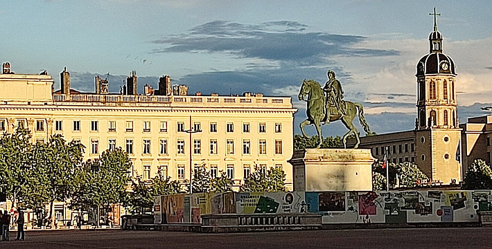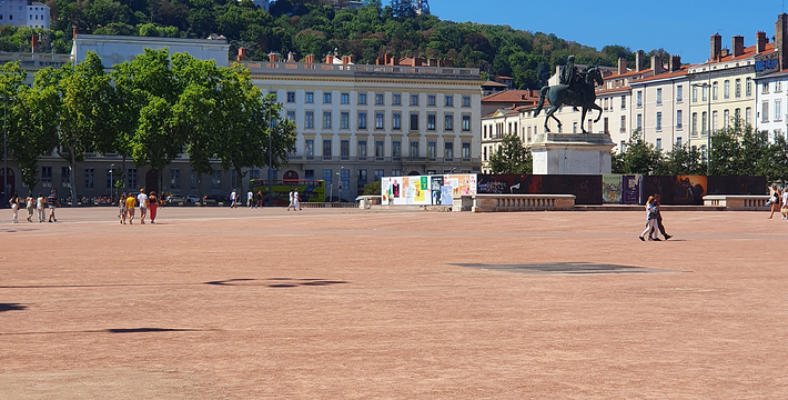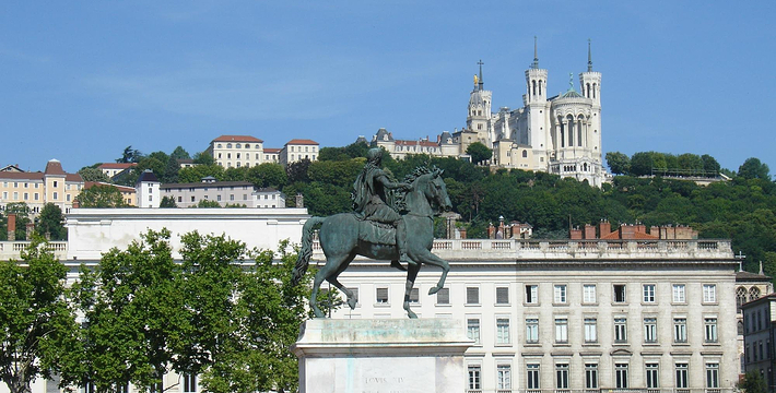 里昂市中心的白莱果广场,一度被称为皇家广场。同一般中心广场不太一样的是,白莱果广场(Place Bellecour)的地面全部是由红土铺成,虽然这样并没有使它非常美丽,但却给人留下了深刻的印象。白莱果广场(Place Bellecour)的红色调同里昂旧城建筑的红屋顶极为和谐。有意思的是,广场还曾是19世纪中期里昂纺织工人暴动的重要舞台。 广场上有一座高大的路易十四骑马雕像,是里昂诞生的雕塑家卢蒙的作品。广场周围林立着19世纪初建造的楼房,以及花店、咖啡座和餐馆等。广场东南面坐落着装饰艺术博物馆(Musée des Arts décoratifs),藏品种类繁多,相当精采。