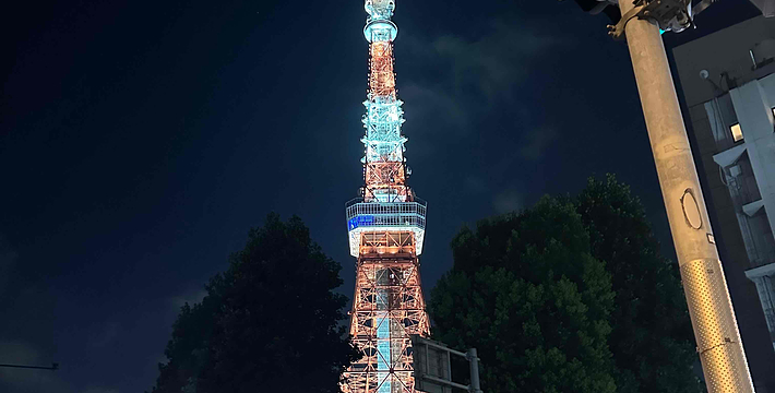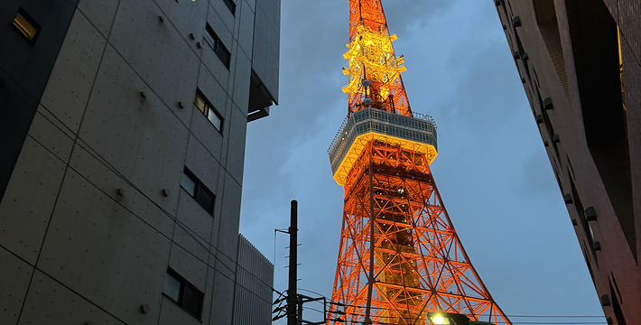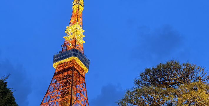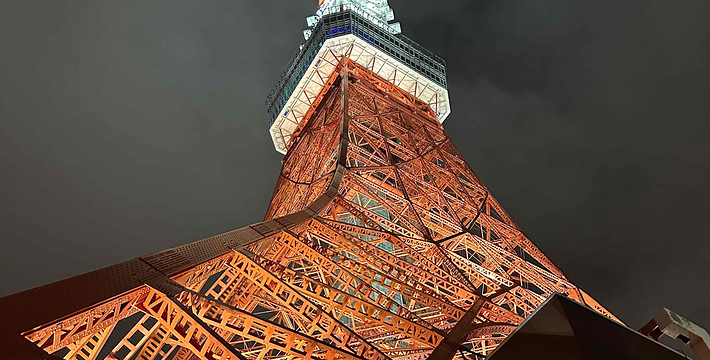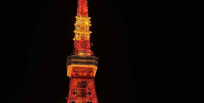 高333米。铁塔由四脚支撑,为棱椎体,塔身被涂成一段一段的澄黄色和乳白色,鲜艳夺目。该塔上肩负着7个电视台、21个电视中转台及广播台的无线电发射任务。在高150米的地方,有一个二层楼高的展望台;在高250米的地方,有一个玻璃展望台,在此可以俯瞰东京全市。塔的下部为铁塔大楼,一楼为休息厅,二楼是商场,四楼是近代科学馆和电视摄影棚。