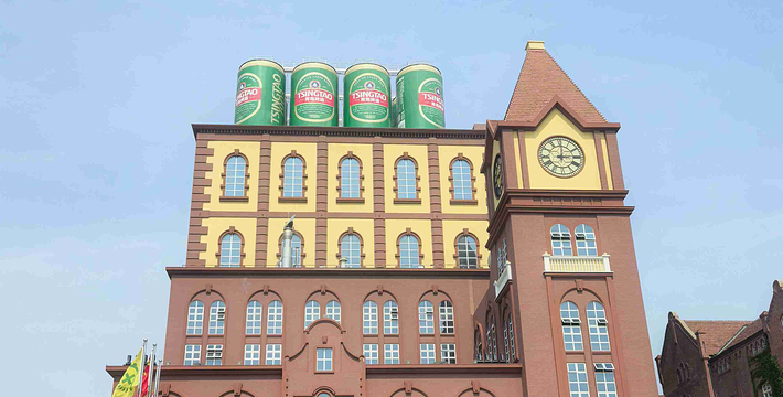 青岛啤酒博物馆设在百年前的青岛啤酒厂老厂房内,一幢幢红色的洋房很有味道,靠马路的一幢房子屋顶上,装饰着一排排超大啤酒罐,格外醒目。