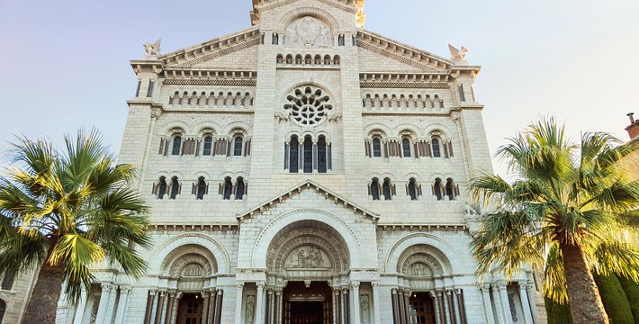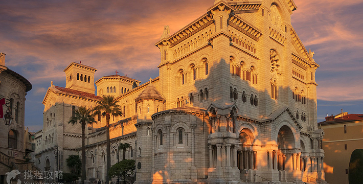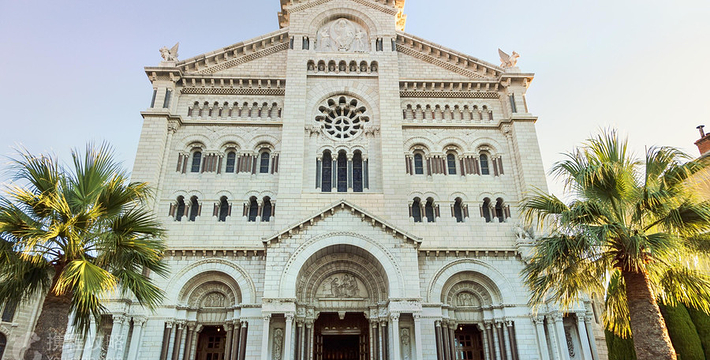 摩纳哥大教堂建于1875年,用Turbie白石头修建而成,古罗马-拜占庭建筑风格,国王死后被埋葬在这里。在此您可参观迄今1500年的尼斯画家Louis Bréa制作的祭坛装饰屏、主祭坛和Carrare白色大理石砌成的主教宝座。每逢假期,大教堂里举行隆重的主教祭礼仪式。1976年这里安装了一架四键盘式管风琴。此后,重大的宗教音乐会都在这里举办。九月至六月的每个周日上午十点,由"Les Petits Chanteurs de Monaco"和"La Matrise de la Cathédrale"在此演唱弥撒曲。