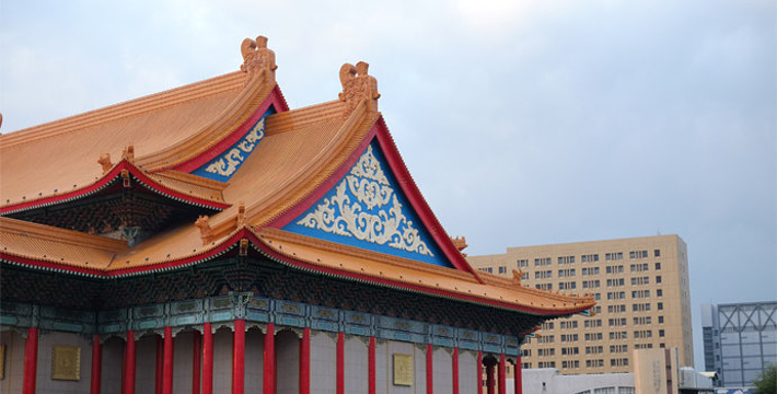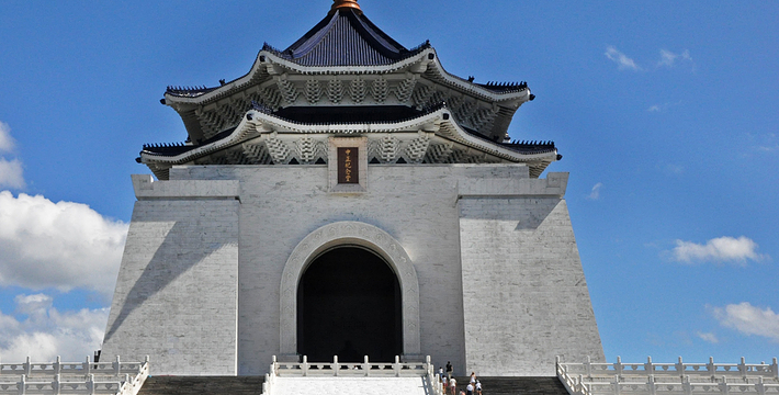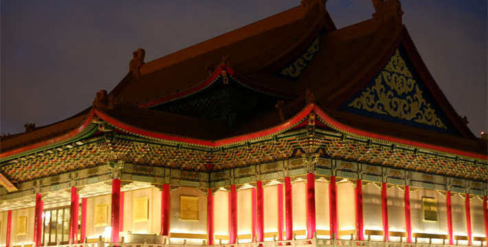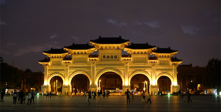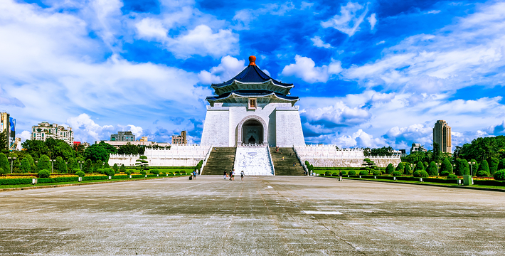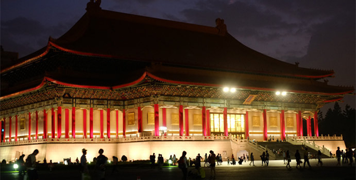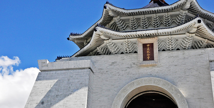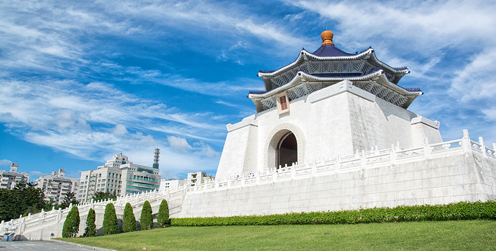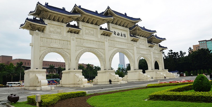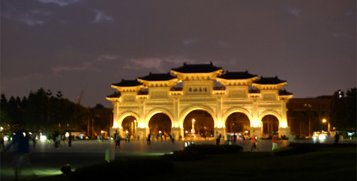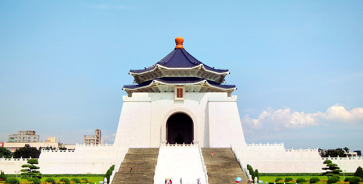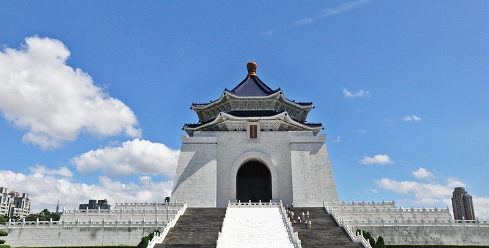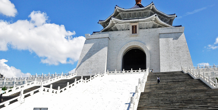 中正纪念堂,是台北景观的重要据点,当你来到台北这个城市,中正纪念堂便自动名列于你的旅游行程之中,仿佛是香港的太平山或是东京的铁塔的地位,纪念着你的旅行。中正纪念堂于民国六十四年,为纪念蒋介石而建,幅员广阔,占地一万五千六百平方公尺,由中山南路、爱国东路和信义交围而成,以中国庭园造景为主要设计形制,加廊窗棱古典而幽雅,整体建筑则以蓝、白二色搭配相和,有着自由、平等的寓意。中正纪念堂由高耸的纪念楼为中心,包围着蓊郁茂密、迎风摇曳而色彩缤纷的树木花圃与池墉小桥,环境清幽而宁静,纪念楼则肃穆而庄严,一楼主要以展览室和放映室为主,展示蒋介石生平事迹文物,顶楼则为蒋介石铜像,两旁驻守着卫兵,而每个小时定时换班的仪式也成为游客游览的重点之一。除了纪念楼外,由于中正纪念堂广场宽敞广阔,因此时有艺文大型演出在此表演,如“云门舞集”户外公演、“跨世纪之音”音乐会,另外,每年元宵节所主办的台北灯会也是中正纪念堂年度的一大盛事。
