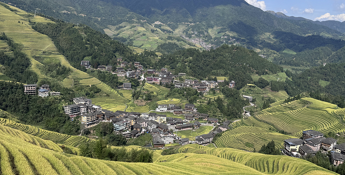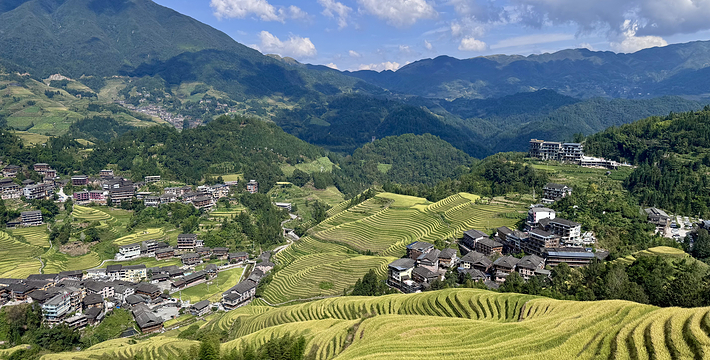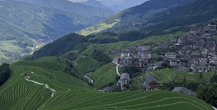 龙脊梯田风景名胜区位于桂林市龙胜各族自治县龙脊镇,距桂林市65公里。321国道经过景区大门,景区距桂三高速公路龙胜双洞出口仅5公里,交通十分便利。龙脊梯田是“世界梯田原乡”。龙脊梯田景区目前是中国重要农业文化遗产、国家AAAA级景区,是以梯田稻作农耕文化为主体,集自然景观与少数民族人文景观相结合的风景名胜区。龙脊梯田历史悠久,梯田始建于秦朝,成形于唐朝,完工于明朝,距今已有2300多年的历史。龙脊的壮族、瑶族先民世代耕种梯田,至今仍保留着“偶耕”等原始的耕作方式。梯田依山形地势而修,从水流湍急的河谷到云雾缭绕的山峦,凡有水、有地的地方,都开凿了梯田。形成了从山脚一直盘绕到山顶,千层天梯上云端的壮丽景观!龙脊梯田的“色彩美”,美在一年四季“生命色彩”的更迭。五月春耕时节,水满田畴,如串串银链山间挂;七月盛夏,稼禾吐翠,似排排绿浪从天泻;十月金秋,稻穗沉甸,像座座金塔顶玉宇;腊月隆冬,雪兆丰年,若环环白玉砌云端,龙脊梯田一年四季各有神韵,均是旅游观光的理想时节。龙脊梯田的“线条美”,美在点、线、面完美的结合,具有强烈的视觉冲击力。梯田的规模磅礴壮观、气势雄浑,集成世界梯田造型之精华,线条如行云流水、潇洒流畅,为天下梯田所望尘莫及,堪称世界梯田奇观。“龙脊”是一个广泛的地理名词,是因为周围群山山脉的走向像一条长龙,这里的老百姓世世代代都居住在神龙的脊背上而得名。景区内共有8000多人口,主要居住着壮族和瑶族群众。包括:龙脊、平安、大寨、金江、小寨、中禄六个行政村。各村寨的梯田和民族风情各有特点,民俗节庆丰富多彩,以五月开耕节、六月梳秧节、七月“六月六”(农历)晒衣节、十月龙脊金秋梯田文化旅游节为代表,民俗风情浓郁、民族文化灿烂多姿。这里美丽的梯田、淳朴的民风,与世不争的人居生态环境,吸引了数以万计的中外游客前来休闲度假;人们远离了喧嚣的都市,将自己也融进如画的风景中,释放了压力、亲近了自然,真正感受到“田园牧歌”般的生活。