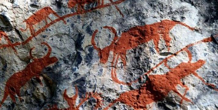 产生于3000多年前的新石器时代晚期。已发现崖画地点11处,分布于沧源县的勐来乡、丁来乡、满坎乡、和平乡和耿马县的芒光乡等地,一般均在海拔1500米左右的山崖上。灰色的石灰岩石壁上画有赭红色的画图,当地的佤族人称为“染典姆”,意为岩石上的画。崖画各地点的画面距地面高2—10米左右,画面积长1—30米不等,画幅小者为数个零散图形组成,大者图像数以百个,动物187个,房屋25座,道路13条,各种表意符号35个;还有树木、舟船太阳、云朵、山峦、大地等图袋子像。人物图形的描绘,均守正百律,以单色勒和单线加平涂,省却五官等细部剪影式手法绘制,通过变化多端的四肢表现人物所从事各种活动。这些图像多有一定的中心内容,其中有狩猎、放牧、舞蹈、归家、娱乐等内容,真实生动地记录了先民们生产、生活的各种场面。沧源崖画会随日照时间、天气阴晴、干湿冷暖等因素不断地变幻色彩,当地佤族和傣族人说它是“一日三变,早红午淡,晚变紫。”为第二批省级重点文物保护单位。