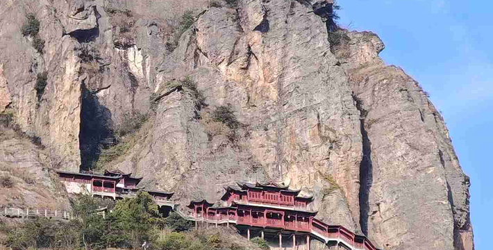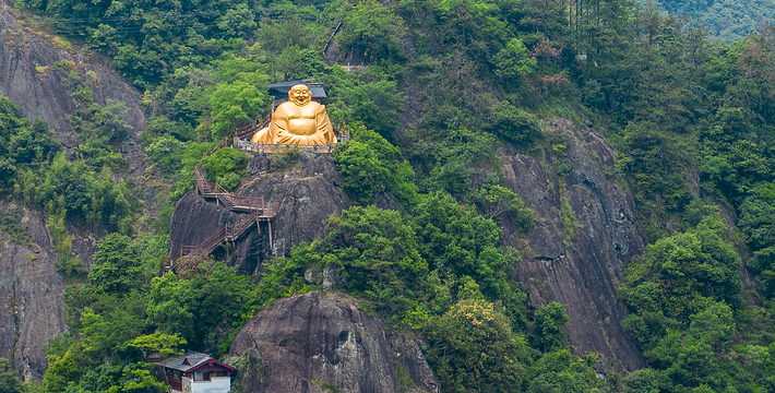 大慈岩是一个佛教文化和秀丽山水完美结合的旅游胜地,素有“浙西小九华”之誉,以“江南悬空寺、长谷溪流”而闻名遐迩。悬崖高位洞穴建筑是大慈岩的一大特色。主殿寺庙地藏王大殿依山而建,它一半嵌入岩腹,一半凌架悬空,颇为奇险壮观,它与山西恒山悬空寺有异曲同工之妙。新建的另一寺庙清风阁凌空构架于悬崖峭壁之上,远视有凌云欲飞之势,而登寺俯瞰,远近山川尽收眼底,更是悬空之极。今人所凿之“天栈云渡”,沿断崖因势布局,凭栏俯视,有“足底悬崖恐欲崩”之感。从侧面看整个大慈岩主峰就是一尊地藏王菩萨的立像。由奇石、怪洞、草木和谐地组合成大佛的五官,惟妙惟肖,形象十分逼真”,被誉为“中华一绝”。而大慈岩也因“山是一尊佛,佛是一座山”的稀有自然景观而名扬四海。