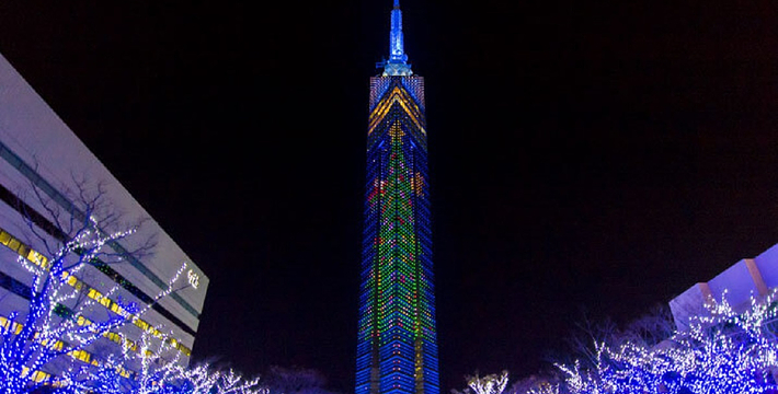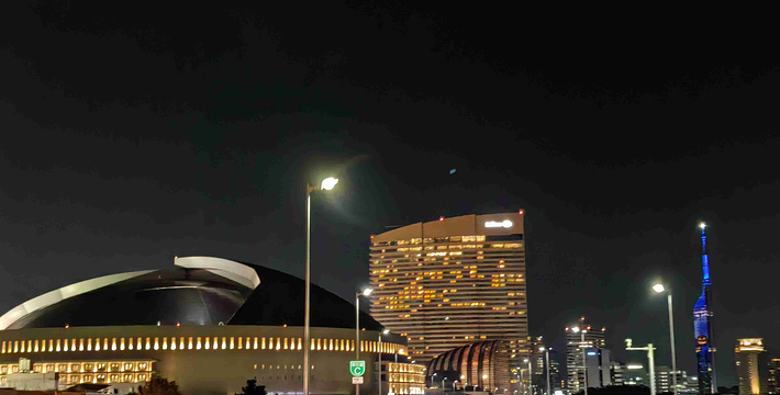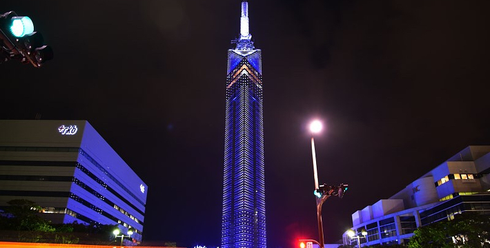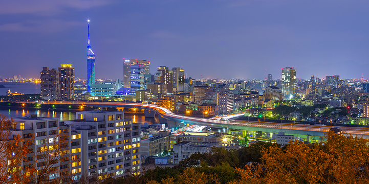 福冈塔座落于海滨,高234米。由8000多片半反射镜覆盖着的塔身,呈三棱柱状,气势非凡。映出福冈的街景。不论白天或夜晚塔身都散发着光亮。在高116米和123米处各设有一个瞭望室,可瞭望福冈市景及博多湾。四周的景色令人叹为观止。7、8月份的夜晚,塔上的照明构成了天上的银河。到了12月份,塔身又呈现出圣诞树的图景。全福岡市再也沒有比這更適合看夜景的地方了,搭乘電來到123公尺高的瞭望台,隔360度的落地窗,整個海濱城鎮的璀璨燈火就在你的腳邊忽明滅,順著階往下走一層樓,浪漫場景便來到咖啡廳,點杯雞尾酒小坐一番,靜靜感受福岡的繁華夜色。交通:搭地铁在“西新站”或“藤崎站”下车,或搭西铁巴士在“福冈塔南口站TNC会馆前”下车。费用:成人800日元,中小学生500日元,儿童200日元开放时间:4~9月