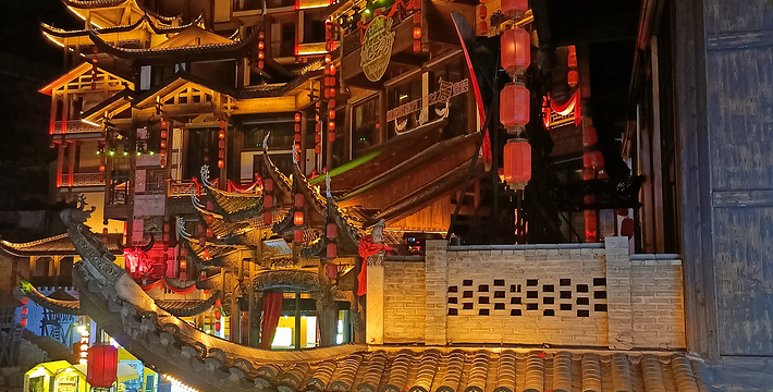 九重天世袭堂是土家风情园的精华和灵魂所在。该建筑由土家民间艺人李宏进设计,依80度陡坡而建,整个楼房全部用木栓连接,没有一颗铁钉,堪称土家族建筑史上的奇迹。