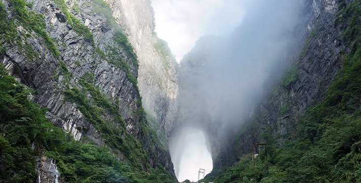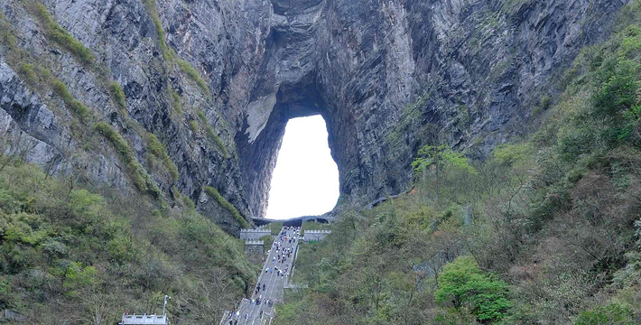 拔地擎天的天门山,山势陡险峻拔,景色雄奇壮丽,被称为张家界的天然画屏,南北对开于千寻素壁之上,气势磅礴,巍峨高绝,是罕见的高海拔穿山溶洞,更是尽显造化神奇的冠世奇观。主要有天门洞开、碧野瑶台、觅仙奇境和天界佛国景区。山顶的千年古刹天门山寺安奉有一枚珍贵的释迦牟尼佛祖舍利,香火鼎盛。天门山索道虹索龙翔,天门洞接地通天,蜿蜒99弯的通天大道扶摇盘旋,悬崖绝壁上的鬼谷栈道更是刺激震撼。